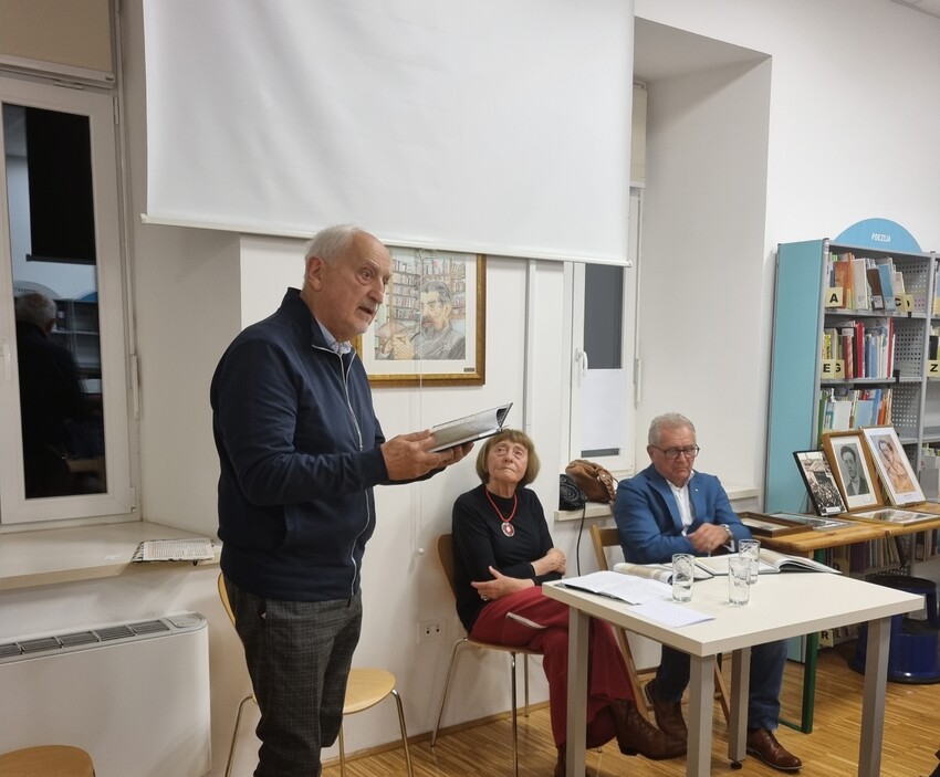 Ob polni dvorani knjižnice v Vipavi je nekaj družinskih spominov na Draga Bajca predstavila tudi njegova nečakinja domačinka Magda Rozman, ki je sabo prinesla tudi nekaj družinskih fotografij Draga Bajca.